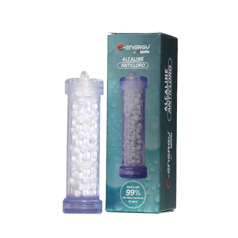 Com esferas Alcaline anticloro que removem até 99% do cloro residual, eliminando o mau cheiro e o gosto ruim da água.